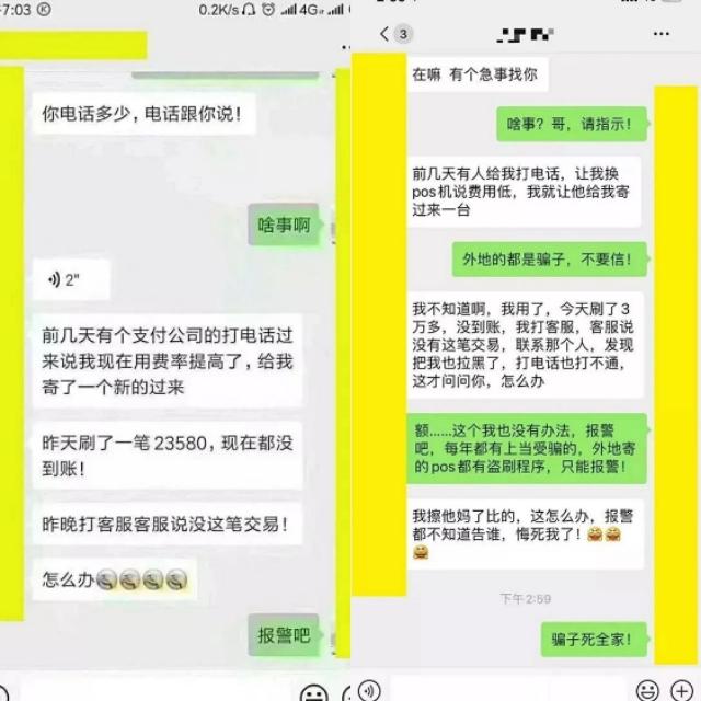 3、誹謗及軟威脅(誹謗客戶手中的pos機不能使用了,公司倒閉了或者刷卡不到賬等等使客戶心中有疑慮,從而達到誘騙的目的)