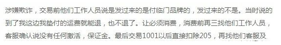 客服催著交易,交易前再三確認沒有任何激活費、保證金!交易1001到賬796.49,扣除將近205元。