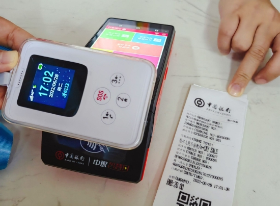 在養護中心現場,海口市民蘇大爺搶先“嘗鮮”,在海南中行工作人員的指導下使用數字人民幣完成了一次針灸理療費用的支付。他高興地表示:“數字人民幣智能電子證只需要‘碰一碰’就能完成支付,我們老年人上了年紀,許多時代的‘新花樣’都跟不上,現在終于也能體驗到金融科技創新的便利了!”
